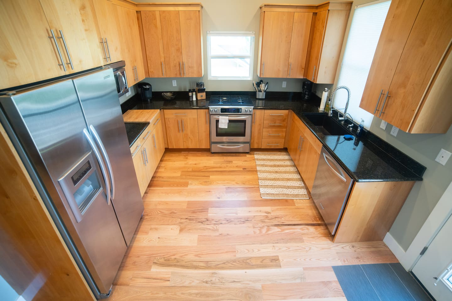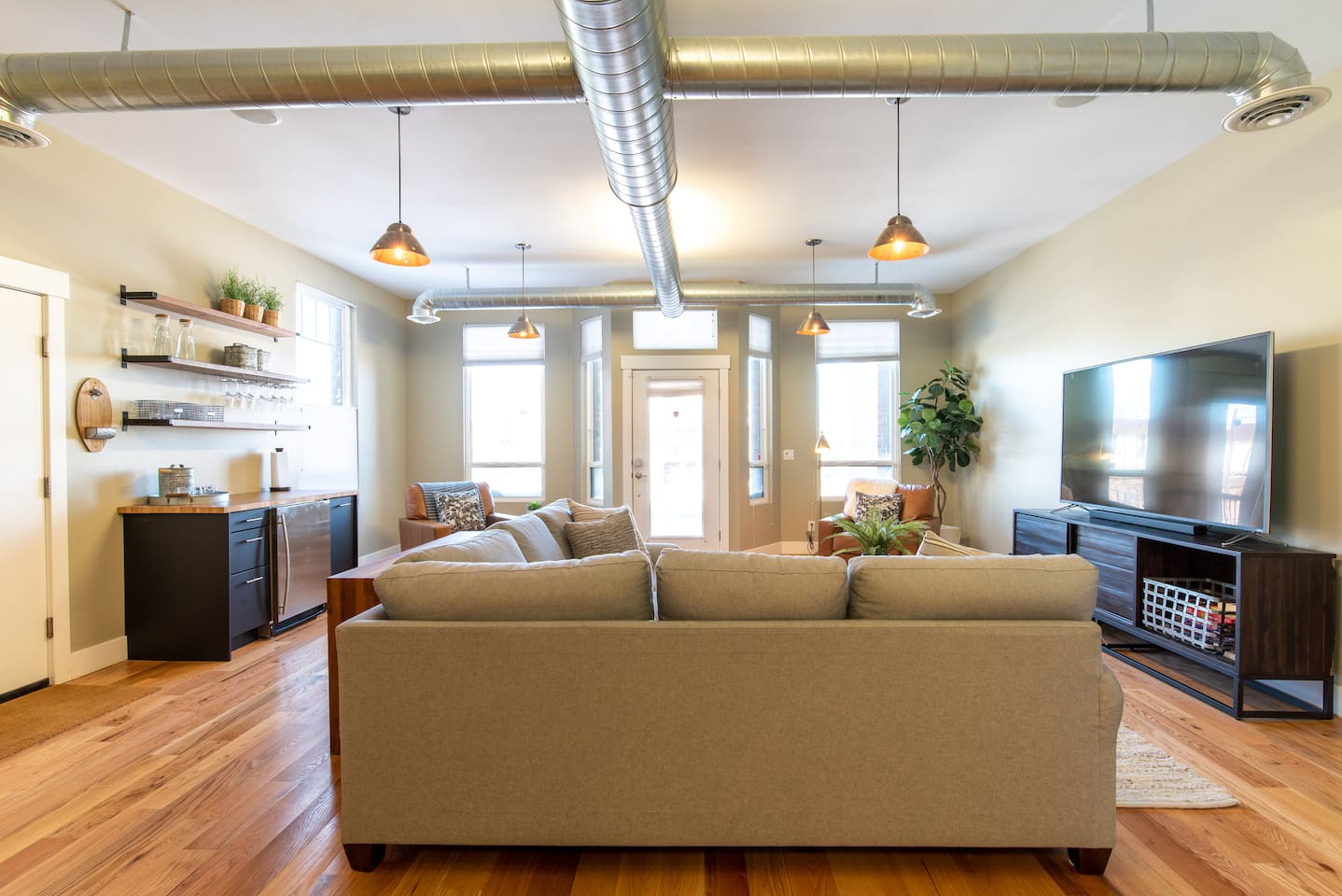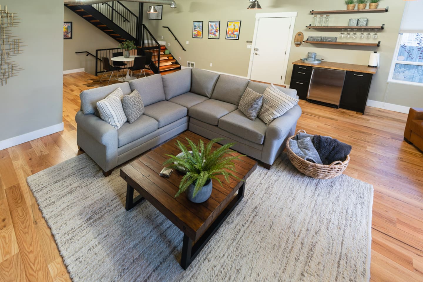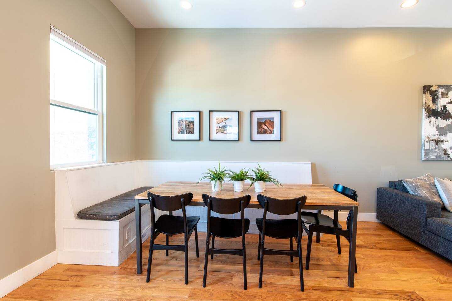 We are very excited to be bringing this property to the Airbnb Market in Salt Lake City. Built in 2009 and with Green materials, this home is more unique and of higher quality than most in the area. The space is truly wonderful! We spent a lot of time working with numerous designers to bring a warm, modern, and extremely stylish space to guests in Salt Lake City. ✯ Ground Floor ✯ features 10-foot ceilings and exposed industrial ducting, accented by a handmade steel and wooden staircase. A 75-inch 4K LED TV is perfect for watching sports games or a movie after an exciting day. Entertaining is made easy with a built in drink center with ice maker and the homes bluetooth enabled built-in home stereo system. ✯ Second Floor ✯ features 10-foot ceilings and is accented by a reclaimed barnwood wall from the backwoods of Idaho. A 65-inch 4K LED TV and a custom built restaurant style kitchen table and bench allow for the entire group to relax on this level. ✯ Bedrooms ✯ all feature high quality, premium pillow top mattresses with soft and firm pillows. - Master Bedroom (second floor): 1 King bed - Guest Bedroom 1 (second floor): 1 Queen bed - Guest Bedroom 2 (basement): 2 Full beds as a bunkbed + air mattress - Guest Bedroom 3 (basement): 2 Queen Beds